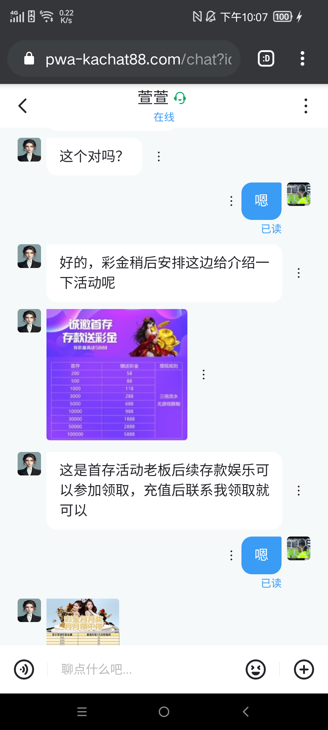 注册好了账号,联系客服发手机号和账号,如果是特邀客服会让你下载咖聊添加专员送彩金,我送了188,自行测试!网址0966.app 注册需要邀请码 65819651