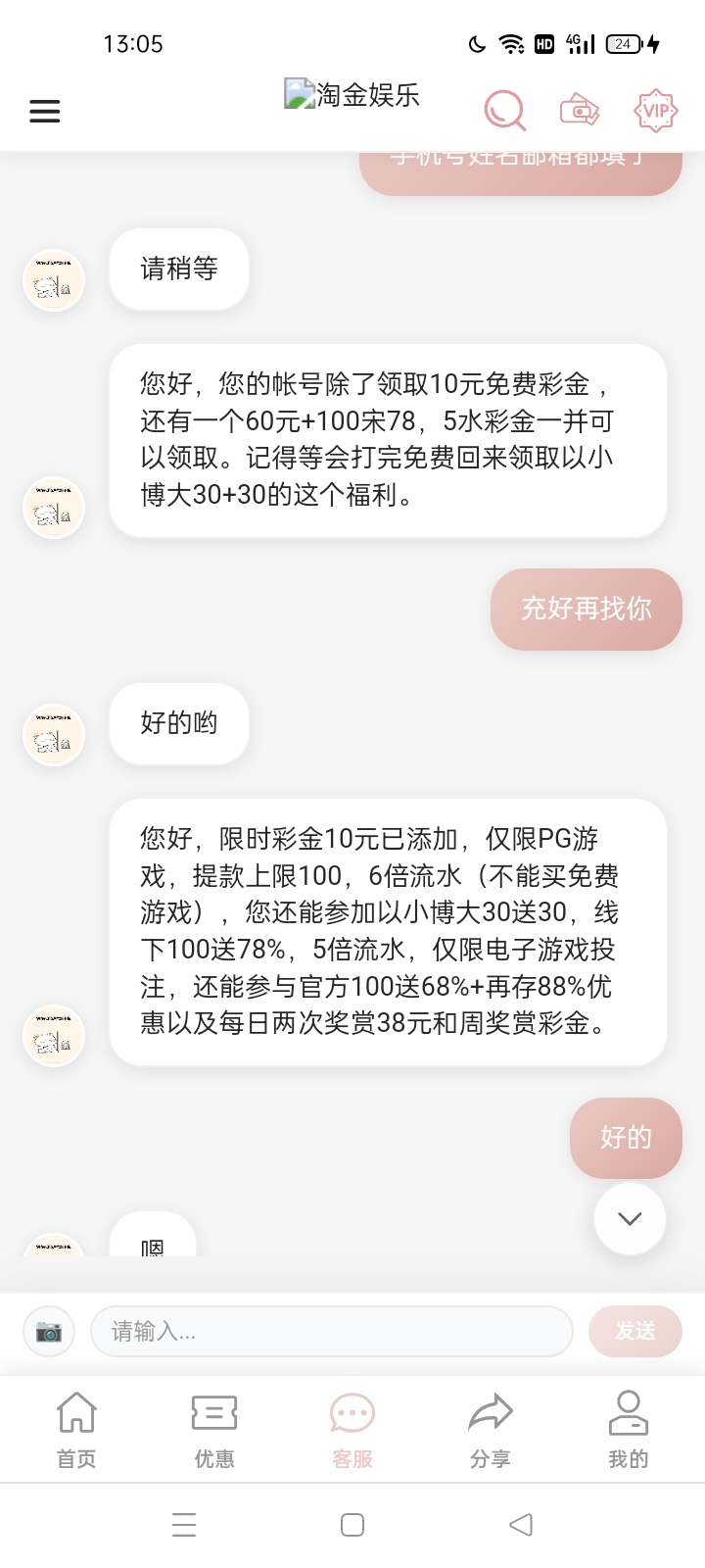 淘金娱乐限时彩金10快冲。先注册账号个人资料绑定手机号,邮箱号,还有姓名就行了然后直接去客服申请