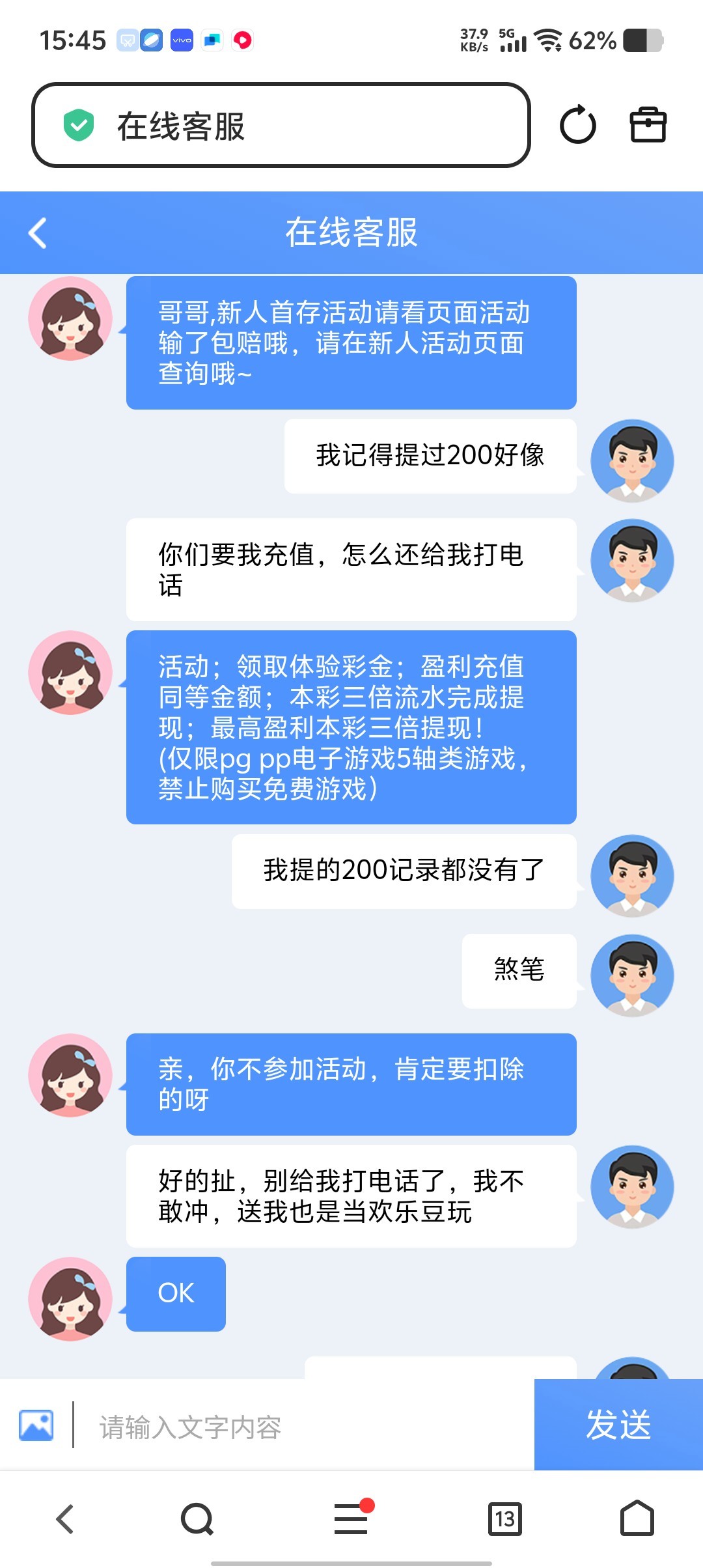 你妈的,老是打电话,随便就能打几百,提现又要充值