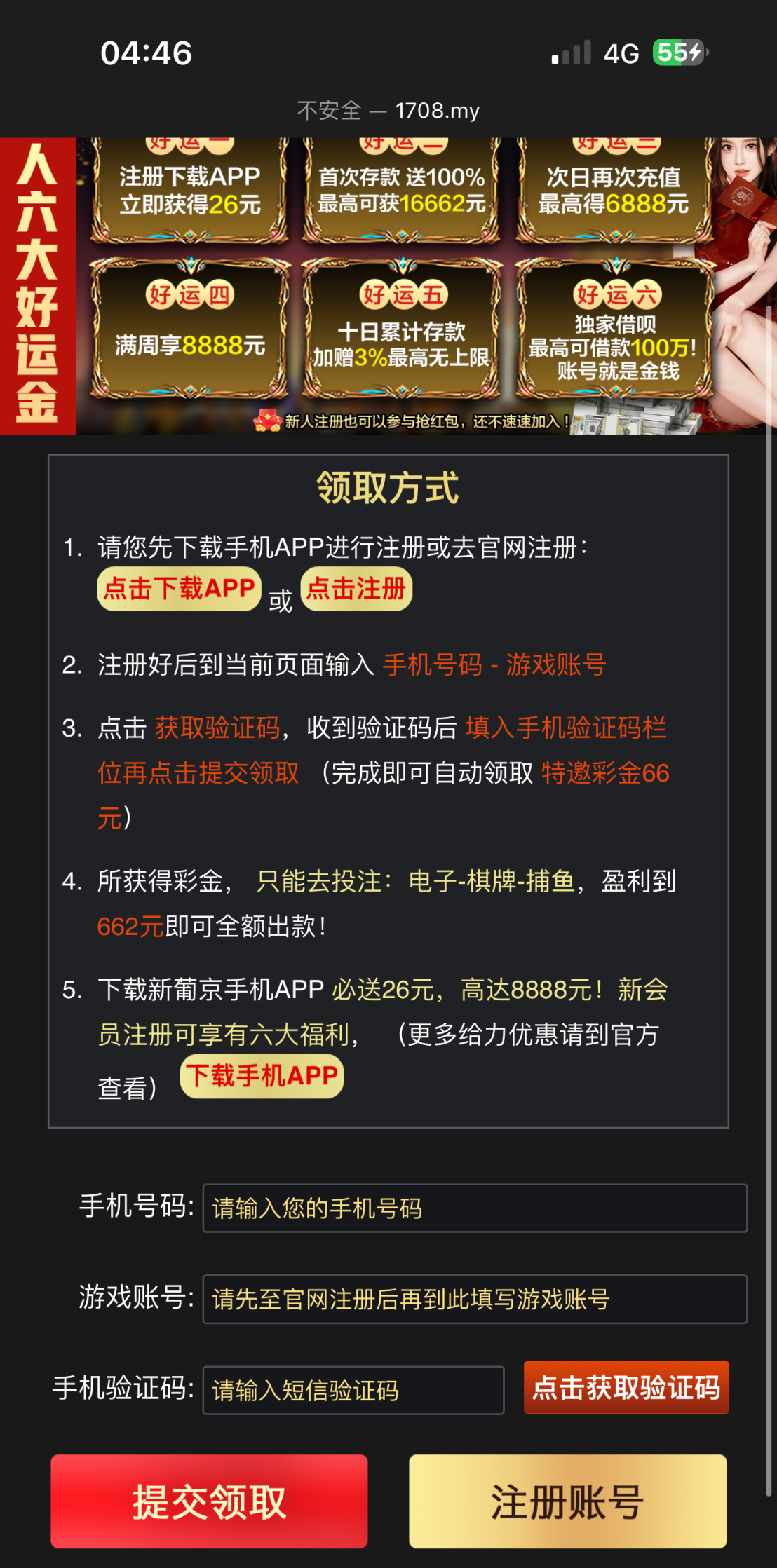 新普京662 短信验证 送66