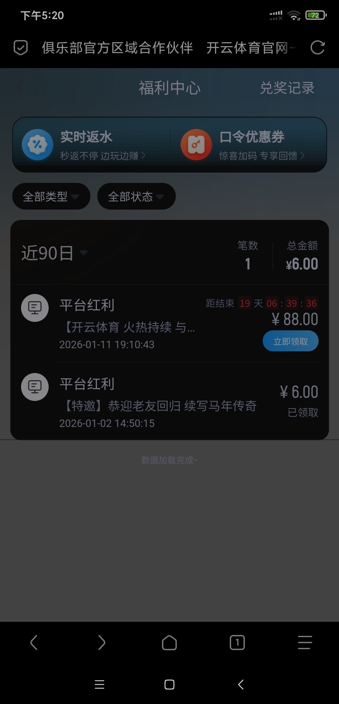开云回馈了188不知道各位老哥有没有,有号的去看看