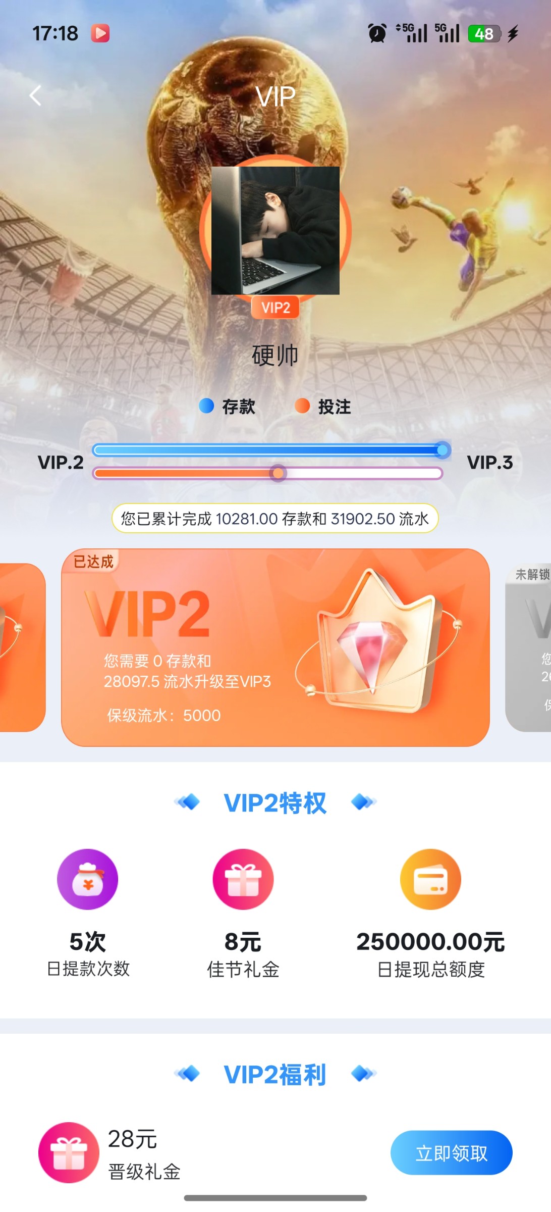 新用户首存100送100,充值后未下注前