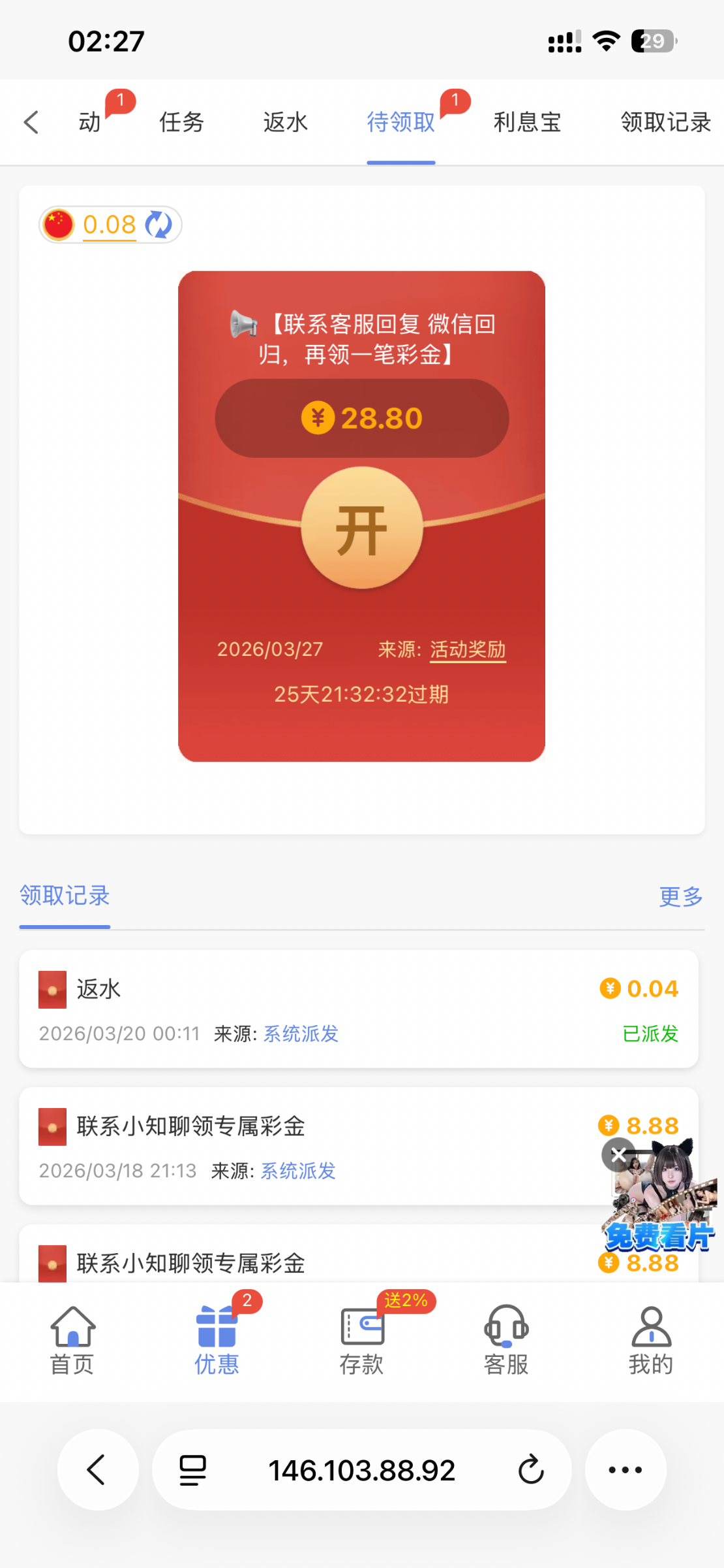 3、本站资源均来自互联网-需自行判断与负责。每日更新(论坛内容仅用于 薅羊毛 白嫖 论坛严禁充值娱乐 严禁任何形式推广 发现一律提交当地公安 )感谢您的支持!