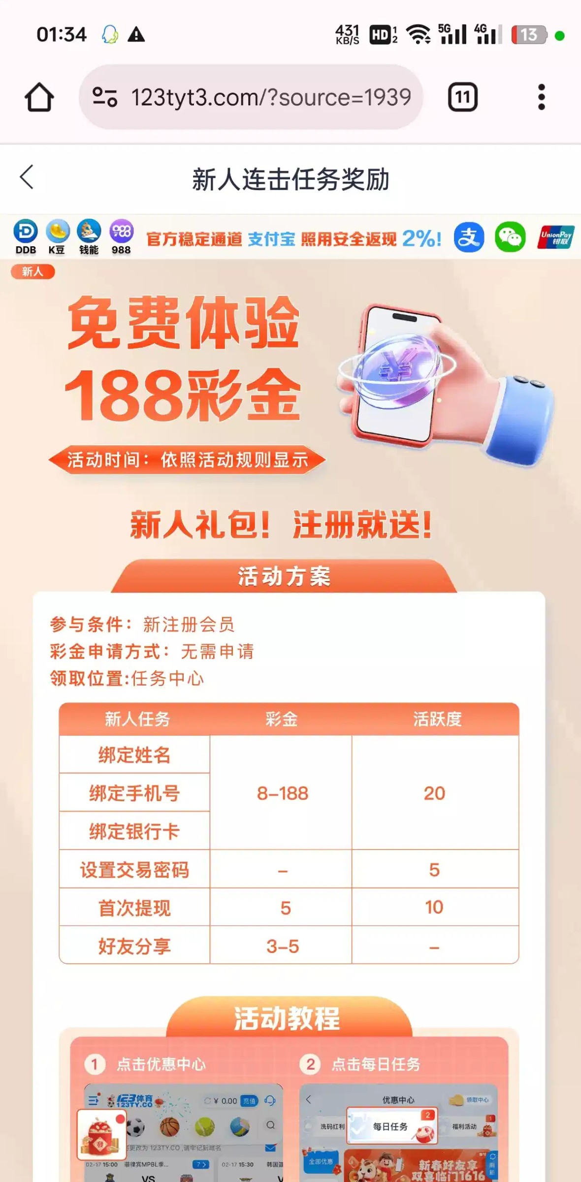 之前注册过的可以去重新注册数据已经全部清空了我以前注册过,发现能重新注册了又领取了8,优惠任务里面领取,绑定好信息刷新一下就有了,这台子有点黑看运气出款的不要充值,网址是:123ty.vip